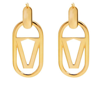 Coppia di pendenti Valentina Ferragni, modello Caro. Realizzati in argento 925 con placcatura in oro giallo. La lunghezza è di 5 cm.