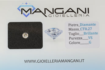 Diamante naturale in blister con una caratura di 0,28 il colore è F e la qualità VS. Il diamante è corredato da garanzia cartacea con le caratteristiche della pietra.