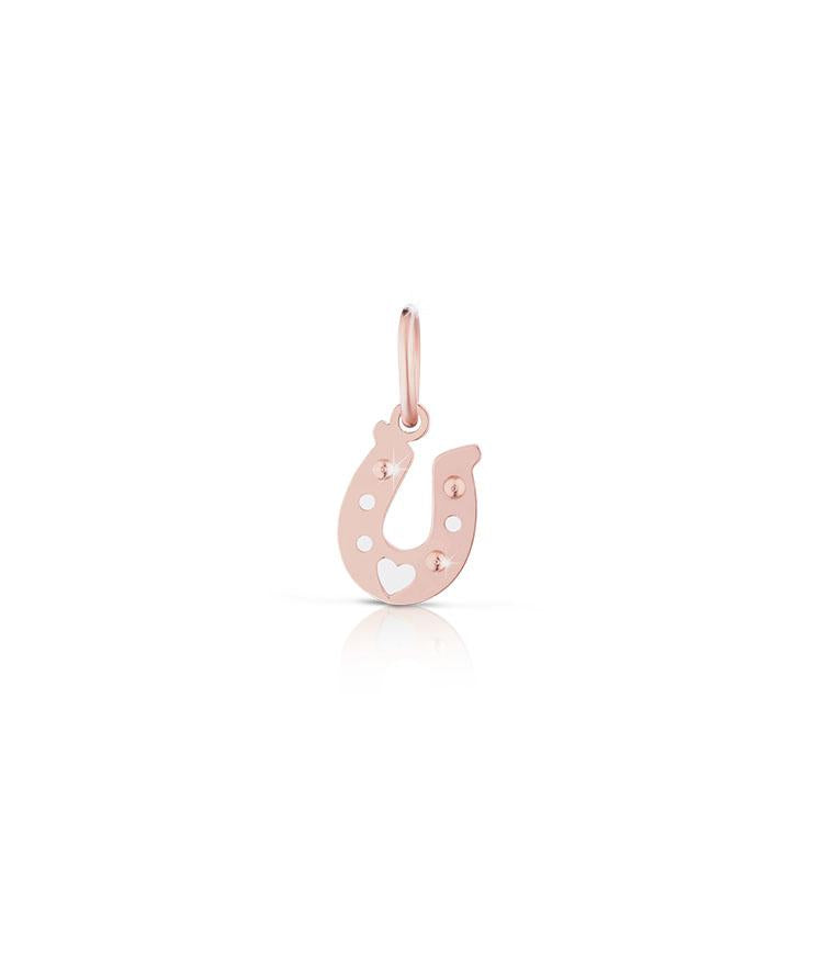 Ciondolo a forma di ferro di cavallo della collezione lock your love. Realizzato in oro rosa 9kt e argento.