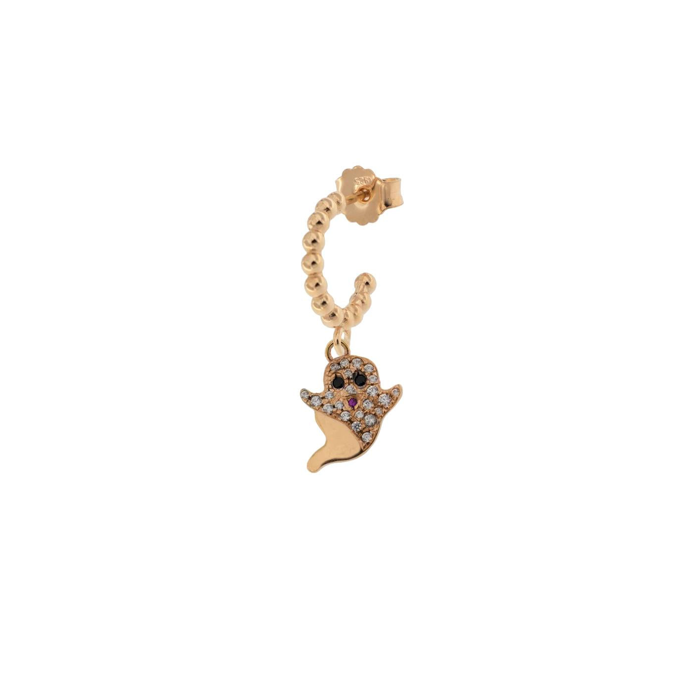 Orecchino singolo con cerchio e soggetto fantasmino con zirconi bianchi