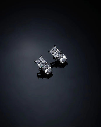 Orecchini Chiara Ferragni brand della collezione Princess, placcatura al rodio con pietre bianche taglio quadrato e ovale, chiusura a farfalla.