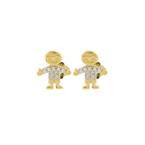 Orecchini Rue des Mille in argento 925 bagnato su oro rosa 18kt a forma di bambino ricoperto da pietre.