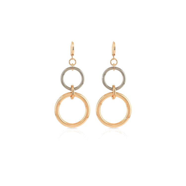 Orecchini Unoaerre in bronzo placcato oro rosa e rutenio, modello lipari con cerchi, chiusura a molla.