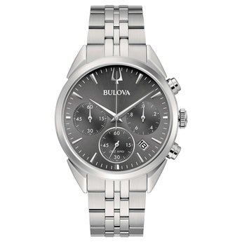 Orologio Bulova da uomo, cassa in acciaio inossidabile con un diametro di 42 mm e uno spessore di 12 mm. Il quadrante è di colore antracite. Il meccanismo è al quarzo 262 kHz Precisionist con funzione di orario, datario e cronografo. Il bracciale è in acciaio inossidabile. Il vetro è in zaffiro antigraffio. Water Resistant.