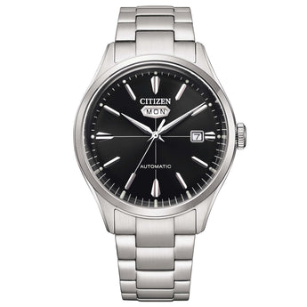 Orologio Citizen con cassa in acciaio inossidabile del diametro di 40 mm. Vetro minerale, quadrante di colore nero. Il meccanismo è automatico con funzione di tempo e data sia del mese che della settimana. La riserva di carica è di 40 ore.