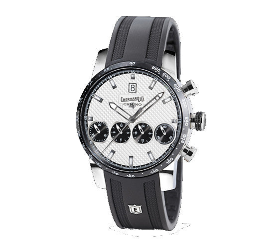 Scopri l'eccellenza dell'orologeria con questo cronografo meccanico automatico in acciaio, dotato del prestigioso dispositivo Eberhard & Co. con 4 contatori allineati, simbolo di precisione e stile senza tempo.