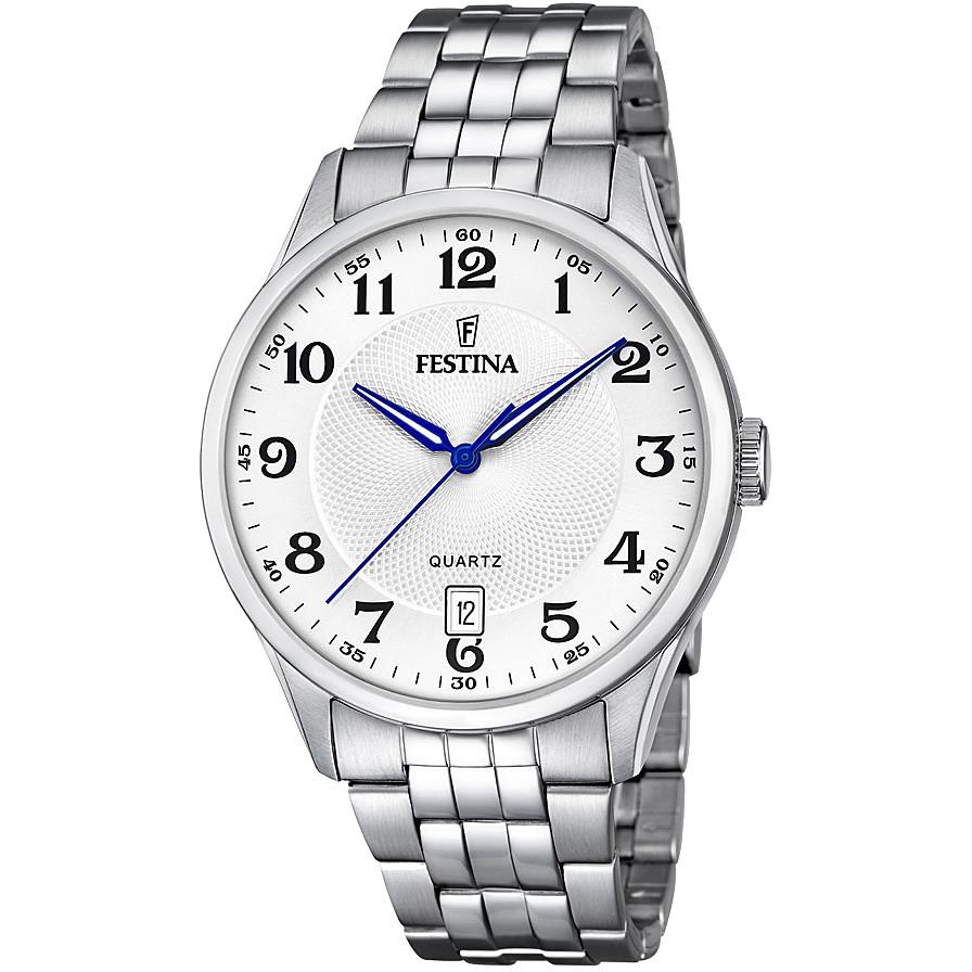 Orologio Festina da uomo, referenza F20425/1, cassa in acciaio inossidabile di forma rotonda con un diametro di 43 mm e uno spessore di 10,35 mm. Il quadrante è di colore bianco con numeri arabi neri. Il vetro è minerale. Il meccanismo è al quarzo con funzione di solo tempo e datario. Il bracciale è in acciaio 316L. La resistenza all'acqua è di 5 Atm.