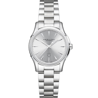 Orologio Hamilton Jazzmaster Lady Auto, cassa in acciaio inossidabile con un diamero di 34 mm, il quadrante è di colore argento con indici applicati. Il meccanismo è automatico Swiss Made con funzione di tempo e datario. Il bracciale è in acciaio inossidabile con fibbia pieghevole. Il vetro è in zaffiro antigraffio. La resistenza all'acqua è di 5 bar.