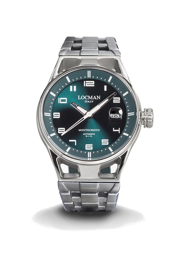 Orologio Locman Montecristo, cassa in acciaio inossidabile con un diametro di 41 mm. Vetro zaffiro antigraffio, quadrante colore petrolio. Meccanismo automatico con funzione di orario e datario. Resistenza all'acqua 10 bar. Bracciale in acciaio inossidabile.