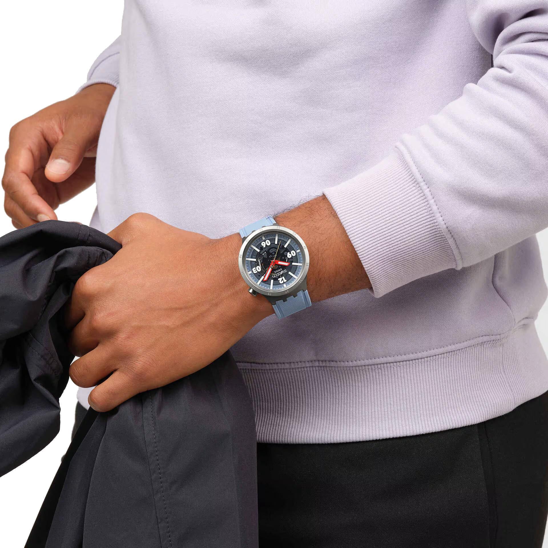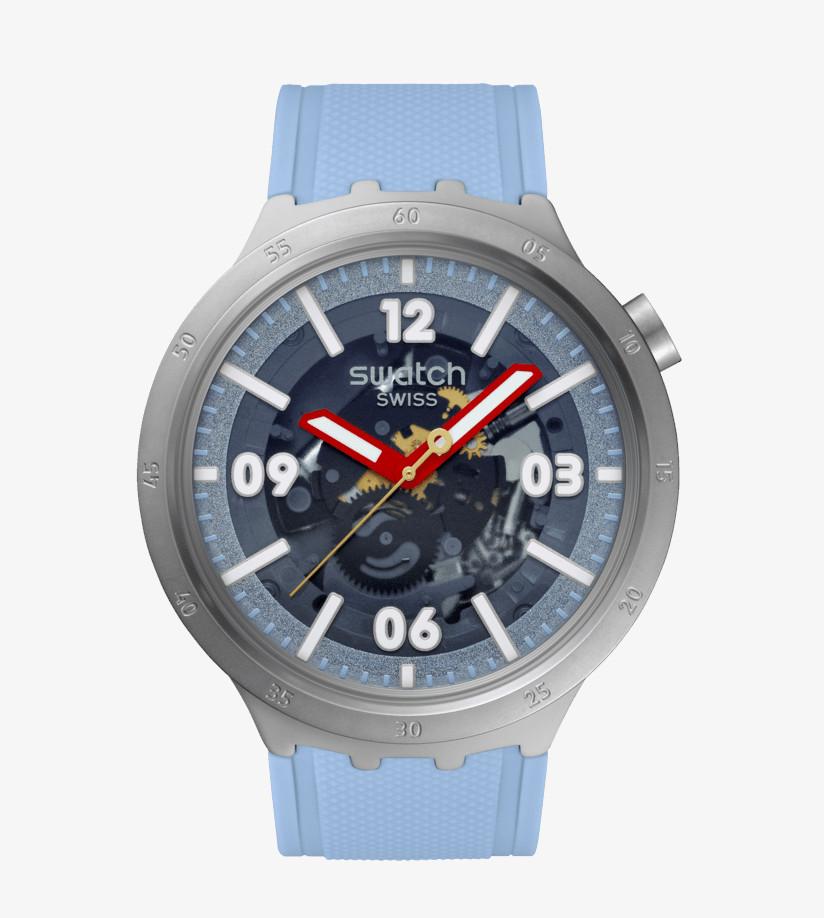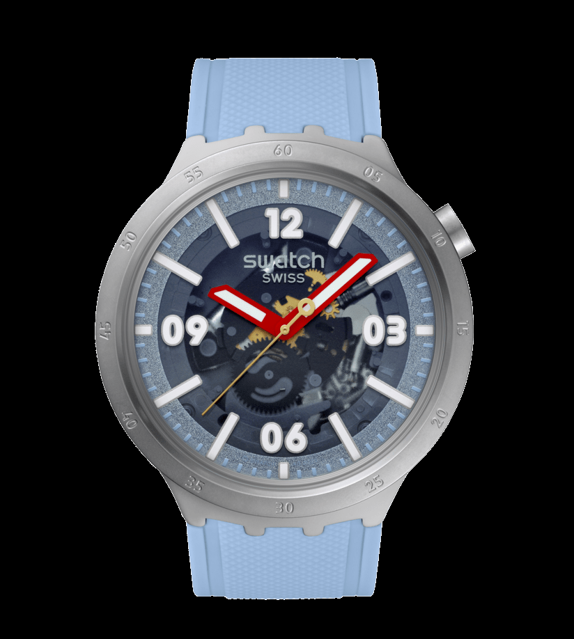 Scopri il carattere deciso e l'estetica d'impatto dello Swatch BIG BOLD, un orologio oversize pensato per chi ama distinguersi. Il design accattivante si esprime attraverso un quadrante trasparente con anello esterno scintillante blu chiaro, indici e numeri bianchi luminescenti, e una minuteria in tinta per una leggibilità ottimale anche al buio.