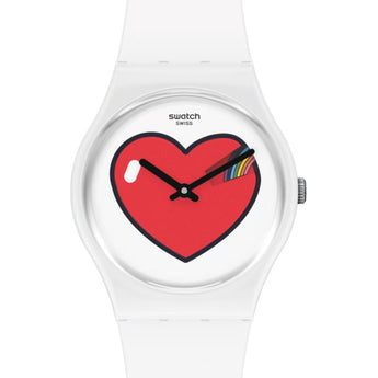 Celebra l'amore con stile grazie a questo esclusivo orologio della collezione di San Valentino. Caratterizzato da una resistente cassa bianca in plastica e da un morbido cinturino in silicone, è il perfetto connubio di comfort e design. Il quadrante bianco si distingue per il dettaglio del cuore rosso e per le eleganti lancette nere che garantiscono una leggibilità impeccabile. Un tocco di unicità è dato dalla finestra della data posizionata a ore 3, che svela diverse emoticon d'amore per rendere ogni giorno speciale. Un accessorio romantico e originale, ideale per chi vuole portare sempre con sé un messaggio d'affetto.