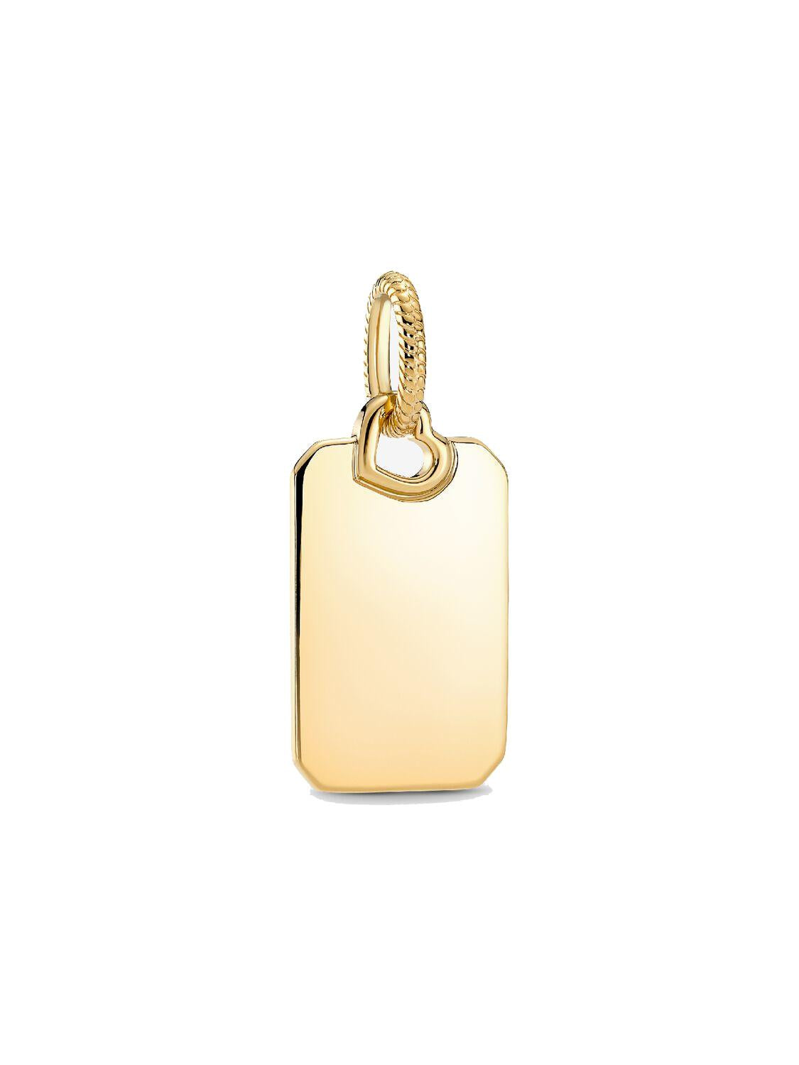 Realizzato nell'esclusiva lega metallica placcata Oro 14k, questo pendente rettangolare può essere personalizzato aggiungendo un messaggio o un simbolo che lo rendano davvero tuo. Indossalo da solo sulla tua collana per renderlo protagonista del tuo look o abbinalo ad altre collane con lunghezze e stili diversi per creare una composizione personalizzata.