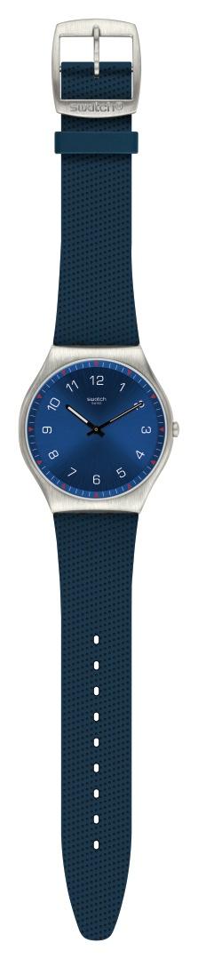Ultrasottile in un classico blu navy scuro, SKINNAVY (SS07S102) ha il cinturino in gomma con rilievi. Il quadrante spazzolato blu scuro presenta eleganti lancette nere Swatch Glow.